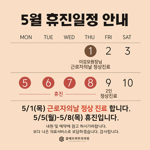 • (단, 공휴일 있는 주는 목요일 진료합니다.)